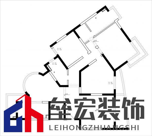 ??然而,家家有本難念的經(jīng),裝修也是如此。在改造前,張女士家的房型是比較少見的不規(guī)則戶型,因此改造的難點在于戶型的結構調整和廚房功能區(qū)的劃分。首先,該戶型有三個陽臺,但是由于限制,全部使用的利用價值不高。其次,廚房對于整個戶型的面積和居住人口偏小,但是餐廳區(qū)域有非常漂亮的圓弧形落地玻璃窗。再次,走道過于狹長,主臥室床背景墻面偏短,與如此大面積的戶型相比缺乏大氣。  改造前戶型圖