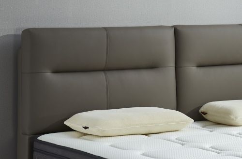 ??東寶床墊這款皮床外觀(guān)清新,造型簡(jiǎn)潔,在現(xiàn)代臥室中讓人眼前一亮。八個(gè)金屬高床腳,擁有12公分的床底高度,簡(jiǎn)潔中帶有一分輕奢感。 ??它的靈感來(lái)源于極簡(jiǎn)理念,沒(méi)有鮮艷的色彩,沒(méi)有繁雜的線(xiàn)條裝飾,柔和的莫蘭迪灰,給人一種安靜、清新的空間氛圍。