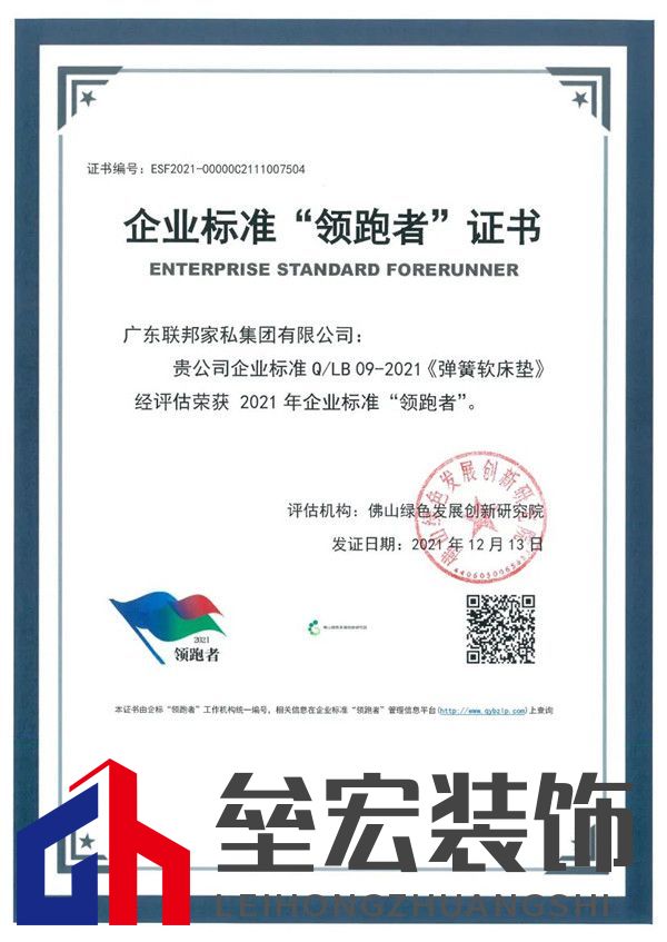 ??這是自2019年企業(yè)標(biāo)準(zhǔn)“領(lǐng)跑者”榜單首次發(fā)布以來(lái),聯(lián)邦家私再次榮獲該項(xiàng)榮譽(yù)。入圍企業(yè)標(biāo)準(zhǔn)“領(lǐng)跑者”,彰顯聯(lián)邦家私彈簧軟床墊技術(shù)在行業(yè)內(nèi)的先進(jìn)性、創(chuàng)新性和引領(lǐng)性,有助于通過(guò)標(biāo)準(zhǔn)推進(jìn)企業(yè)和行業(yè)的技術(shù)革新和高質(zhì)量發(fā)展。