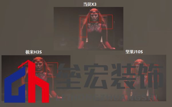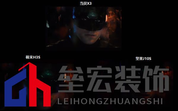 ??當(dāng)貝X3達到國內(nèi)智能投影儀少有的3200ANSI流明亮度,相比極米H3S和堅果J10S的亮度多了1000ANSI流明左右亮度,即使在白天也能看。 ??在接下來的畫質(zhì)內(nèi)容部分能夠看出來區(qū)別很大,堅果J10S畫質(zhì)還是有發(fā)綠情況,視覺看著太明了。 ??三、畫質(zhì)分辨率 ??當(dāng)貝X3在色彩、畫質(zhì)、對比度上,相比極米H3S和堅果J10S優(yōu)勢明顯,更具層次感,在蝙蝠俠的頭盔、旁邊女主鼻子、臉頰等部位更不同。