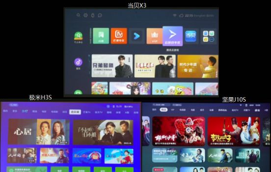 ??四、系統(tǒng)功能 ??1、UI內(nèi)容 ??極米H3S和堅果J10S的UI設(shè)計,都是采用國內(nèi)投影儀都在用的傳統(tǒng)式、固定UI,整體布局視覺焦點有點亂,極米H3S僅僅支持近場語音遙控,堅果10S和當(dāng)貝X3一樣支持遠/近場語音遙控。 ??而當(dāng)貝X3是全新UI設(shè)計,桌面軟件應(yīng)用、頻道直接直給,并且像應(yīng)用的云游戲?qū)^(qū)、芒果TV、音樂頻道等都可以和手機一樣自由移動、刪除添加等,還有精彩預(yù)覽、標(biāo)準/兒童/長輩模式切換。
