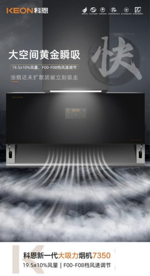強(qiáng)大的吸力、精致的外觀、使用的性能~一款優(yōu)秀的煙機(jī),能夠輕松解決廚房油煙問題,讓油污更少,讓廚房更潔凈,讓家人更健康!集成灶十大品牌、廚電行業(yè)十大品牌科恩新一代大吸力煙機(jī)7350即將上市,敬請期待~  |