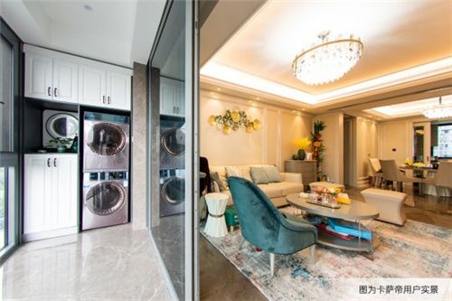 對于洗護場景而言,卡薩帝也依托嵌入式科技實現(xiàn)顛覆:洗衣機的純平嵌入,同樣實現(xiàn)了洗衣機前板與櫥柜純平一體,配合針對“纖維秩序”的五度數(shù)控科技,衣物輕松開啟“養(yǎng)護”之旅的同時更為陽臺空間的打造提供更多可能。