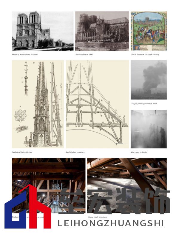 ROOF of MIST 大教堂的尖頂在歷史上被視為虔誠的象征,但也代表著贊助人的財(cái)富。面對為巴黎圣母院重新設(shè)計(jì)毀壞屋頂?shù)奶魬?zhàn),我們想設(shè)計(jì)一個(gè)代表人民的屋頂。 我們沒有給屋頂一個(gè)確定的形狀,而是提出了一個(gè)由代表集體意向的薄霧制成的屋頂。屋頂由三個(gè)部分組成:一個(gè)高壓噴嘴系統(tǒng)、一系列由燒木制成的三角形框架,以及地板為玻璃的鋼吊橋。噴嘴系統(tǒng)具有防火和社交參與裝置的雙重功能。它與城市的投票系統(tǒng)相連,將根據(jù)市民的反應(yīng)調(diào)節(jié)不同區(qū)域的彈射壓力。投票系統(tǒng)將通過應(yīng)用程序和互聯(lián)網(wǎng)平臺(tái)運(yùn)行。霧的覆蓋范圍和密度會(huì)隨著人類的參與而改變。不僅是虔誠的象征,我們希望新屋頂也能成為鼓勵(lì)人們參與社會(huì)的象征。 雖然這座重要紀(jì)念碑的屋頂在火災(zāi)中被毀是一個(gè)巨大的損失,但我們希望將其視為大教堂積極發(fā)展的機(jī)會(huì);因此,這場火災(zāi)不應(yīng)是城市失憶癥。對于屋頂上的原始木材結(jié)構(gòu)“森林”,木框架按照原始圖案鋪設(shè),但升華成更好的耐候材料燒焦的雪松,以紀(jì)念火災(zāi)事件。為重建大教堂做出貢獻(xiàn)的人的名字將被刻在木頭上。三角形的框架將支撐一座吊橋,讓人們可以體驗(yàn)和穿過霧蒙蒙的屋頂。玻璃地板還將展示哥特式教堂原有的石質(zhì)拱形天花板,讓人們更多地了解建筑之美。