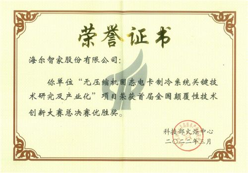 | 進(jìn)入物聯(lián)網(wǎng)時(shí)代以來,中國的科技發(fā)展明顯提速。面對日趨激烈的國際競爭,發(fā)展顛覆性技術(shù)、推動革命性創(chuàng)新,成為解決各領(lǐng)域“卡脖子”技術(shù)難題的重要推動力。 在此背景下,由國家科學(xué)技術(shù)部舉辦的全國顛覆性技術(shù)創(chuàng)新大賽受到了社會各界的廣泛關(guān)注。3月22日-23日,這項(xiàng)大賽在經(jīng)過8個(gè)多月的層層比拼之后,完成了最終決賽階段。從最初入圍初賽的2724個(gè)研發(fā)項(xiàng)目,到僅75個(gè)項(xiàng)目入圍決賽,最后遴選出36個(gè)項(xiàng)目最終勝出??梢钥闯?,本屆全國顛覆性技術(shù)創(chuàng)新大賽的選拔機(jī)制可謂非常嚴(yán)格,在各行各業(yè)提報(bào)的重點(diǎn)科研項(xiàng)目中,幾乎達(dá)到了百里挑一。 那么,在與消費(fèi)者關(guān)系最為密切的家電行業(yè),有沒有在比賽中一鳴驚人的技術(shù)成果呢?答案是有,且僅有唯一一家企業(yè)獲得最高獎(jiǎng)。海爾智家憑借自主研發(fā)的“無壓縮機(jī)固態(tài)電卡制冷系統(tǒng)關(guān)鍵技術(shù)及產(chǎn)業(yè)化”項(xiàng)目,在決賽中以全票通過的成績獲優(yōu)勝獎(jiǎng),打破了家電行業(yè)被集體“噤聲”的局面。