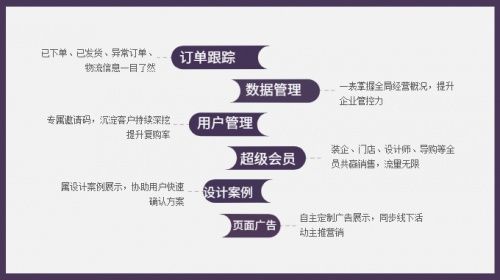 ??同時,引入第三方金融機構(gòu),所有進入平臺的貨款均由平安銀行公正監(jiān)管,貨到結(jié)算,客戶資金無憂。只有當貨物到達客戶手中,才對工廠進行付款,以此對找家居網(wǎng)的資金流、工廠物流和信息流進度進行風險把控,并把單個商家的不可控風險轉(zhuǎn)變?yōu)檎壹揖泳W(wǎng)平臺的整體可控風險。保證第三方商家對產(chǎn)品制造端進行有效的監(jiān)控,將風險控制在最低。 ??技術(shù)上,找家居網(wǎng)擁有強大的IT團隊,通過“互聯(lián)網(wǎng)+”解決方案鏈接相關(guān)的資源,利用大數(shù)據(jù)來掌握消費趨勢,從專業(yè)的角度出發(fā)幫助用戶合理規(guī)劃,提供了客服服務系統(tǒng)、訂單跟蹤系統(tǒng)、獲客系統(tǒng)、商品管理系統(tǒng)、會員管理系統(tǒng)等。壓縮了從客戶下達訂單到交付給客戶的整個供應鏈履行周期,以最少的庫存和最短的時間來實現(xiàn)產(chǎn)品的交付。 ??從技術(shù)架構(gòu)層面來說,找家具的“互聯(lián)網(wǎng)+”具備四項特征:“鏈接、協(xié)助、靈活、迅速”,商家不僅可以借助客服系統(tǒng)與訂單跟蹤系統(tǒng)直接與工廠溝通,借助平臺數(shù)據(jù)為自身企業(yè)決策提供支持,也可以根據(jù)市場環(huán)境變化,對商品進行實時調(diào)整與上傳自己的產(chǎn)品。 ??找家居網(wǎng)幫助商家精準把控家具從無到有、從廠到家的每一個環(huán)節(jié),同時還具有: