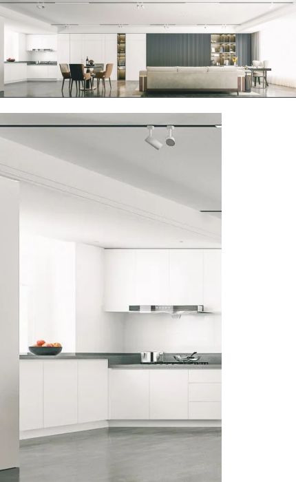 ??本案以白色為主調(diào),從廚房到客餐廳的一體化設(shè)計,各功能區(qū)之間不做隔斷更寬敞明亮,從視覺上放大效果同時增進與家人間的互動交流。