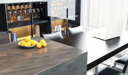 ??一體化的餐廚打破空間阻礙,保證了空間和視覺的和諧統(tǒng)一,給人的觀感不僅成熟大氣,還折射出低調(diào)的時尚。