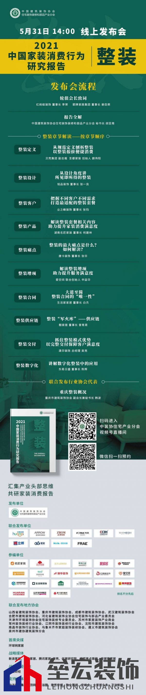 2016-2020家裝消費行為研究報告 2021年,中裝協住宅產業(yè)分會聚焦“整裝”,聯合了22 家頭部家裝企業(yè),在全國五大區(qū)域開展消費調研,以全產業(yè)研究矩陣收集到 11878 份樣本數據,形成了 89 個數據圖表。此外,中裝協住宅產業(yè)分會還面向企業(yè),以現場走訪、電話訪談、線上會議等多種互動溝通形式,進行了供給側的深度調研。  5月31日,家居界期待已久的《2021中國家裝消費行為研究報告——整裝》即將線上發(fā)布。本次線上發(fā)布會,將邀請十家參編單位代表的掌門人,按照報告章節(jié)順序進行詳細解讀;并以中裝協住宅產業(yè)分會的官方視頻號,協同15個地方行業(yè)協會、10家聯合發(fā)布單位,面向全產業(yè)、全社會聯合線上發(fā)布。本次報告的發(fā)布,將給出完整準確的“整裝”定義,精確解讀整裝消費需求,深挖整裝的本質和規(guī)律,深度解析整裝產業(yè)鏈上的難點、痛點和發(fā)力點,為家居行業(yè)呈現一幅整裝全鏈路數據的完整地圖。 三、營銷價值釋放:在整裝新大陸開辟企業(yè)增長第二曲線 目前,整裝已經是整個家裝行業(yè)三分天下有其一的強大存在,也是被裝企、定制企業(yè)乃至成品企業(yè)等眾多家居行業(yè)企業(yè)們寄予厚望,并規(guī)劃在其中發(fā)展第二增長曲線的優(yōu)質市場土壤。此次《2021中國家裝消費行為研究報告——整裝》的發(fā)布,不僅是中裝協住宅產業(yè)分會行業(yè)責任的履行和實踐,更將為中國家居行業(yè)企業(yè)釋放巨大的營銷價值能量。  首先,本次報告已經摸清了整裝消費市場最真實的原生態(tài)圖景;其次,中裝協住宅產業(yè)分會聯合地方行業(yè)協會、頭部裝企等前沿專業(yè)力量,揭秘了整裝一線戰(zhàn)場最不為人知的難點、痛點和發(fā)力點?;谝陨蟽牲c,報告展示的關于整裝消費最完善的需求規(guī)律,以及對整裝全產業(yè)鏈不同核心環(huán)節(jié)的深刻剖析,其實就是家居行業(yè)企業(yè)經營整裝的指導性手冊和避坑指南。而這樣一份指南,將為當下的企業(yè)疫后復工復產,以及未來的整裝營銷安排,作出非常重要而有利的導向! |