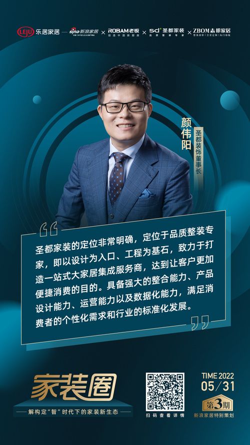 ??解構(gòu)定“智”時(shí)代下的家裝新生態(tài) ??5月31日下午2點(diǎn),新浪家居特別策劃?rùn)谀俊都已b圈》邀請(qǐng)到了貝殼集團(tuán)副總裁、圣都家裝創(chuàng)始人顏偉陽(yáng)、志邦家居董事長(zhǎng)孫志勇、老板電器副總裁何亞?wèn)|三位不同領(lǐng)域的行業(yè)大咖齊聚線上,圍繞這些關(guān)鍵詞來(lái)共同“解構(gòu)定‘智’時(shí)代下的家裝新生態(tài)”。