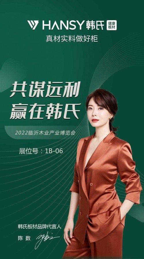 ??攜手陳數(shù) 創(chuàng)贏典范 ??2022年2月,韓氏健康板材迎來歷史性時(shí)刻--著名影星陳數(shù)成為“韓氏”品牌代言人,正式開啟品牌戰(zhàn)略元年,為品牌賦能?!绊n氏”與陳數(shù)共同攜手一起創(chuàng)造美好大家居的新生活,助力經(jīng)銷新思路,贏利家居新藍(lán)海!2022期待您的加入!