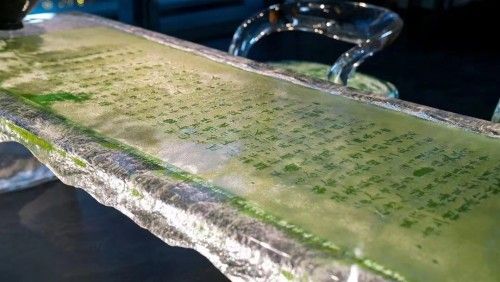 李老師設(shè)想將《蘭亭序》織成古錦,采用將織錦嵌入冰島水晶的工藝,塑造在河水中被千古冰封的樣子,使其成為一款晶瑩剔透、色調(diào)清新、視覺驚艷的藝術(shù)茶桌,實(shí)現(xiàn)書法美、織錦美、意境美和諧統(tǒng)一,突破以往高端茶桌均采用名貴木材的概念,使當(dāng)代中華文化創(chuàng)意設(shè)計(jì)實(shí)現(xiàn)新的跨躍。