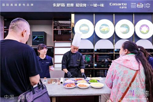 | 現(xiàn)在,越來(lái)越多用戶會(huì)選擇在家里下廚做飯。調(diào)查顯示,這屆年輕人正逐漸告別外賣,鉆進(jìn)廚房開始自己做飯??蓽?zhǔn)備好了食材、餐具,卻發(fā)現(xiàn)連基本的火候都掌握不熟,做飯時(shí)手忙腳亂。不過(guò),在這兩天的重慶,日常做飯中出現(xiàn)的這些問題有了解決方案。哪怕廚房新手,也能3分鐘烤出意式薄餅披薩。其中有什么奧秘呢?這要?dú)w功于卡薩帝高端廚房。 6月24日,“重百家電節(jié)”在重慶解放碑正式啟動(dòng),卡薩帝廚房“超級(jí)烤?一城一味”活動(dòng)同步拉開帷幕。在卡薩帝打造的智慧廚房場(chǎng)景中,用戶可以在銀河烤箱智慧菜譜的加持下,一鍵烘烤,輕松烹飪一桌美食大餐。即使是廚房小白,也能在家輕松做大廚。同時(shí),卡薩帝智慧廚房與阿爾法魚進(jìn)行了深度結(jié)合,能為用戶一站式解決烹飪難題。