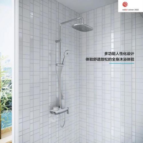 ??打開開關(guān),一抹時尚寧靜的伊奈藍(lán)便隨之浮現(xiàn)。置物臺與水管連接處的弧形設(shè)計采用伊奈特有的“火山形”設(shè)計元素,水流自然落下,不易沉積水漬,切換后輕松實現(xiàn)頂噴和手持花灑的切換,享受不同水流帶來的舒爽沐浴體驗。