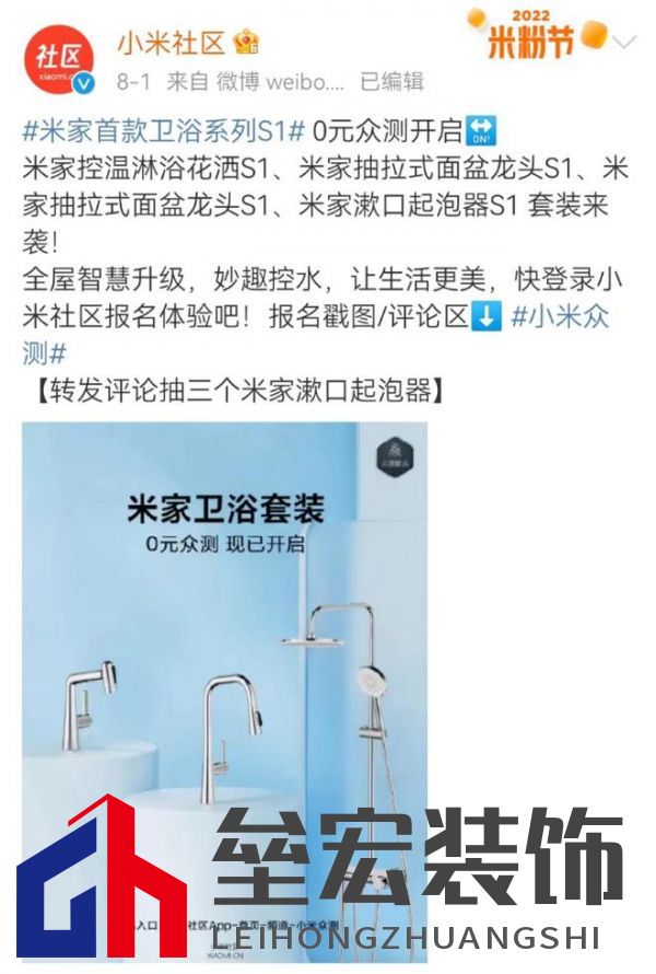 自手機(jī)圈脫穎而出后,小米開始性價(jià)比和質(zhì)價(jià)比的模式介入了與“家”和“生活”相關(guān)的多個企業(yè),小米生態(tài)鏈由此而生。 作為小米的自營智能家庭品牌,米家旨在給消費(fèi)者帶來集可靠品質(zhì)、優(yōu)良設(shè)計(jì)、合理定價(jià)于一身的智能家居產(chǎn)品,涵蓋智能安防、智能廚衛(wèi)、智能家電、智能照明、軟裝家紡等多個品類。 2020年10月,小米公司曾對大白衛(wèi)浴進(jìn)行戰(zhàn)略注資,這家智能五金衛(wèi)浴品牌也正式成為小米生態(tài)鏈企業(yè)的新成員。 8月1日,小米米家首款衛(wèi)浴系列S1發(fā)布,將于8月8日0點(diǎn)正式發(fā)布并開啟預(yù)售。這一動作也被視為小米正式進(jìn)軍衛(wèi)浴領(lǐng)域! 此次,小米共推出了四款衛(wèi)浴系列產(chǎn)品,分別是米家控溫淋浴花灑S1、米家抽拉式面盆龍頭S1、米家抽拉式廚房龍頭S1以及米家漱口起泡器S1,售價(jià)低至49元。