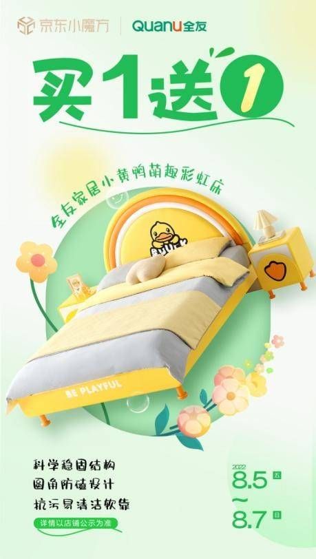 | 近日,全友和B.Duck小黃鴨攜手推出造型萌趣、健康環(huán)保的兒童家居新品。產(chǎn)品上線后,受到眾多消費(fèi)者的喜愛(ài),家居達(dá)人、母嬰博主紛紛種草,為全友和小黃鴨的聯(lián)名新品打call。 種草家居好物,除了顏值、功能、環(huán)保之外,備受大家關(guān)注的,當(dāng)然是性價(jià)比啦。據(jù)悉,此次全友和B.Duck小黃鴨的聯(lián)名新品將在京東電商平臺(tái)進(jìn)行首發(fā),全友為消費(fèi)者準(zhǔn)備了超多驚喜福利,誠(chéng)意滿滿。   (全友家居X(jué) B.Duck小黃鴨聯(lián)名新品)   (全友家居X(jué) B.Duck小黃鴨聯(lián)名新品) 新品發(fā)布,顏值C位價(jià)格實(shí)惠 主打新款小黃鴨彩虹床,一款雙色,黃色活潑粉色甜美,男寶女寶都可輕松適配。軟包床頭、貼心圓角設(shè)計(jì)防止寶寶攀爬磕碰,床屏更采用科學(xué)抗污面料,畫(huà)筆、口紅等污漬一擦就掉,不用擔(dān)心孩子寫寫畫(huà)畫(huà),讓他們的無(wú)窮想象盡情揮灑。 孩子用的東西,安全是首要。綠色全友,綠色產(chǎn)品,新品采用E0級(jí)抗菌板材和啞光環(huán)保油漆,為孩子營(yíng)造一個(gè)健康的成長(zhǎng)環(huán)境。   (全友家居X(jué) B.Duck小黃鴨聯(lián)名新品) 彩虹床搭配兒童椰絲棉床墊可愛(ài)值拉滿。全友這款小黃鴨護(hù)脊床墊不僅外觀軟萌可愛(ài),內(nèi)在也很“有料”。環(huán)保護(hù)脊椰絲棉+邦尼爾護(hù)脊彈簧,真正的護(hù)脊實(shí)力派,讓孩子的脊柱在睡眠時(shí)保持正常的生理彎曲狀態(tài),睡出健康好身型。   (全友家居X(jué) B.Duck小黃鴨聯(lián)名新品) 正反雙面兩種睡感,滿足孩子不同成長(zhǎng)階段所需,避免短期更換,一種價(jià)格兩種享受,妥妥的性價(jià)之選! 另外,全友京東小魔方新品日活動(dòng)期間,選購(gòu)以上兩款新品,還可享買贈(zèng)優(yōu)惠哦!  (全友家居X(jué) B.Duck小黃鴨聯(lián)名新品) 除了床和床墊,全友和B.Duck小黃鴨聯(lián)名系列還有超多好物正在參與活動(dòng)。漫畫(huà)風(fēng)滿滿的雙門衣柜+收納斗柜系列,萌趣造型下更有巧思,趣味漫畫(huà)引導(dǎo)孩子合理收納,讓孩子享受勞動(dòng)樂(lè)趣的同時(shí),培養(yǎng)自主思維,寓教于樂(lè)。 除了可愛(ài)的聯(lián)名款兒童產(chǎn)品,還有更多有顏有質(zhì)的家居好物,新品嘗鮮,5折就能帶回家,拼手速搶千元紅包,還有精美滿贈(zèng)商品等著你!   優(yōu)惠加碼, 多重好禮超值驚喜 本次全友京東小魔方新品日活動(dòng)力度空前,不僅針對(duì)新品、爆款推出優(yōu)惠專享價(jià),還為粉絲朋友們準(zhǔn)備了夏日清涼福利。 加入全友會(huì)員,多重優(yōu)惠拿到手軟!8月5日-8月7日,新品會(huì)員專享抽獎(jiǎng)小黃鴨單床(128701)、專享試用小黃鴨聯(lián)名豆袋沙發(fā)(102855)。部分爆款+新品限量半價(jià)開(kāi)搶,下單即送精美換鞋凳(102817/102818)。 活動(dòng)期間下單,每滿200-30元,入會(huì)多省180元,拼手速搶千元紅包,搶0.1元特權(quán)再省100元。    8月5日~8月7日,在京東平臺(tái)搜索“全友家居”,參與全友京東小魔方新品日活動(dòng),把性價(jià)比好物帶回家! |