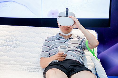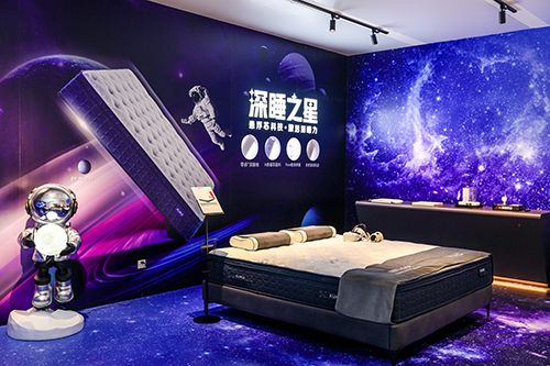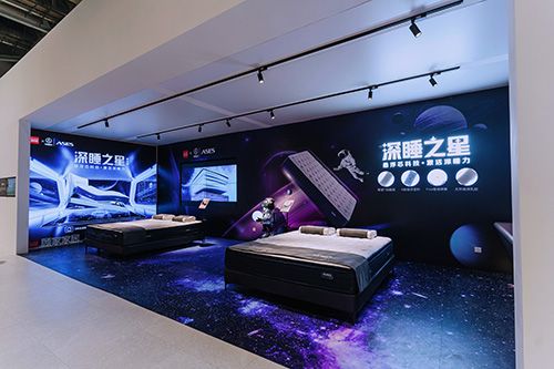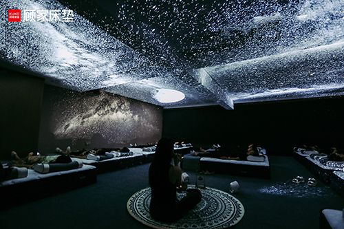 ▲顧家家居深睡之星床墊展區(qū) ??在深睡之星系列床墊展區(qū),與產(chǎn)品名完美契合的場(chǎng)景設(shè)計(jì)給人帶來(lái)身處宇宙星空的震撼之感。在深睡之星科技版體驗(yàn)專(zhuān)區(qū),顧家家居還配備了專(zhuān)門(mén)的VR眼鏡。利用AR虛擬技術(shù),通過(guò)融入視覺(jué)和聽(tīng)覺(jué)的場(chǎng)景化體驗(yàn),參觀者在體驗(yàn)產(chǎn)品時(shí)可以身臨其境感受漫游星河的感覺(jué),在空間的交互與時(shí)間的變幻中,真正享受深睡之星科技版的輕懸浮舒壓睡感和自由隨心的智能科技。