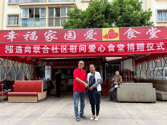 ??回訪團(tuán)隊來到榜樣人物小區(qū)樓下時,王蘭蘭還在為社區(qū)愛心食堂一場公益活動而忙碌著。見到回訪團(tuán)隊捧著鮮花到來,她馬上熱情地迎上來握手問候。
