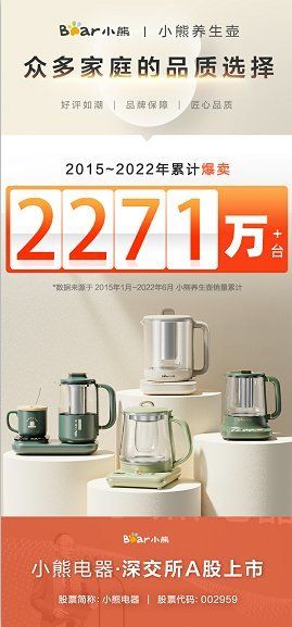 小熊電器持續(xù)深挖消費(fèi)者的需求,力求研發(fā)創(chuàng)新緊跟用戶(hù)和市場(chǎng),在做好產(chǎn)品的基礎(chǔ)上,也實(shí)現(xiàn)了持續(xù)增長(zhǎng),其養(yǎng)生壺品類(lèi)成為小家電產(chǎn)品超級(jí)符號(hào)便是最好的證明。