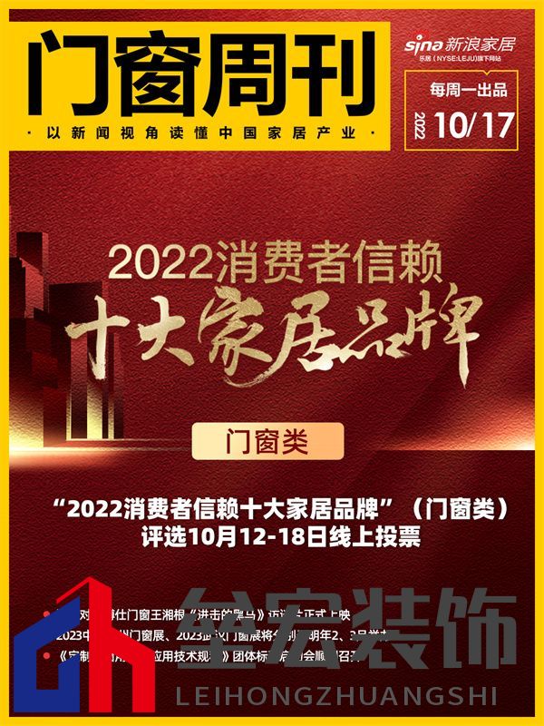 ??“2022消費(fèi)者信賴十大家居品牌”(門窗類)評(píng)選10月12-18日線上投票 ??10月12日消息,由樂居家居主辦,新浪家居承辦,CCTV《大國品牌》、家頁、家居質(zhì)量研究院、大國中居聯(lián)合主辦,全國工商聯(lián)家具裝飾業(yè)商會(huì)、中國建筑材料流通協(xié)會(huì)共同指導(dǎo),樂騰商學(xué)院、家頁智庫、家居質(zhì)量研究院提供研究支持的“2022消費(fèi)者信賴十大家居品牌”(門窗類)評(píng)選于9月16日正式啟動(dòng)。經(jīng)過企業(yè)申報(bào)、候選品牌公示環(huán)節(jié)后,該活動(dòng)于10月12日正式進(jìn)入投票環(huán)節(jié)。據(jù)悉,本次網(wǎng)絡(luò)票選為期7天,從10月12日-10月18日,在全國范圍內(nèi)同步展開。