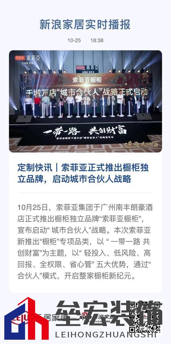 ??新浪定制頻道訊 10月25日,索菲亞集團于廣州南豐朗豪酒店正式推出櫥柜獨立品牌“索菲亞櫥柜”,宣布啟動“ 城市合伙人”戰(zhàn)略。本次索菲亞新推出“櫥柜”專項品類,以 “ 一帶一路 共創(chuàng)財富”為主題,以“ 輕投入、低風(fēng)險、高回報、全權(quán)限、省心管” 五大優(yōu)勢,通過“ 合伙人”模式,開啟整家櫥柜新紀(jì)元。