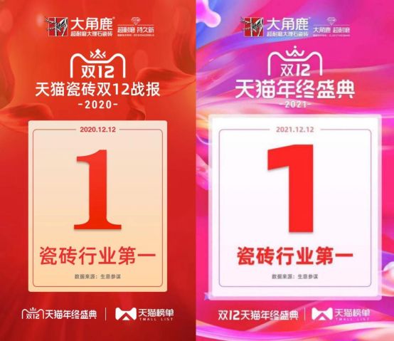 ??全網(wǎng)冠軍!大角鹿新零售力戰(zhàn)群雄屢創(chuàng)佳績(jī) ??眾所周知,我國瓷磚行業(yè)已經(jīng)歷多年的存量市場(chǎng)博弈。隨著2022上半年,購房等相關(guān)政策放寬,刺激著瓷磚市場(chǎng)需求持續(xù)釋放與增長(zhǎng)。供需兩端的“對(duì)撞”恰逢國民電商節(jié)慶,今年的雙11購物節(jié)顯得尤為熱烈——既是家裝產(chǎn)品消費(fèi)者們的狂歡,也是瓷磚品牌們進(jìn)入競(jìng)爭(zhēng)“白熱化”的戰(zhàn)場(chǎng)。大角鹿在激烈競(jìng)爭(zhēng)中力戰(zhàn)群雄,勇奪雙11大理石瓷磚品牌全網(wǎng)銷量冠軍。這是市場(chǎng)與消費(fèi)者對(duì)大角鹿超耐磨瓷磚的產(chǎn)品實(shí)力及品牌影響力的極大肯定。 ??自2020年起,大角鹿開始全線布局電商新零售渠道以來,近幾年在618、雙11、雙12等大型購物節(jié)中,大角鹿均取得不斐戰(zhàn)績(jī),屢次拿下瓷磚品類銷量冠軍。 ??2020年,大角鹿以出色的銷量成績(jī),力壓眾多優(yōu)秀瓷磚品牌,拿下2020天貓雙12“瓷磚行業(yè)第一”桂冠;2021年天貓雙12狂歡盛典,大角鹿再度奪下“瓷磚行業(yè)第一”的銷冠寶座,連續(xù)兩年成為天貓雙12瓷磚品類銷量霸主。