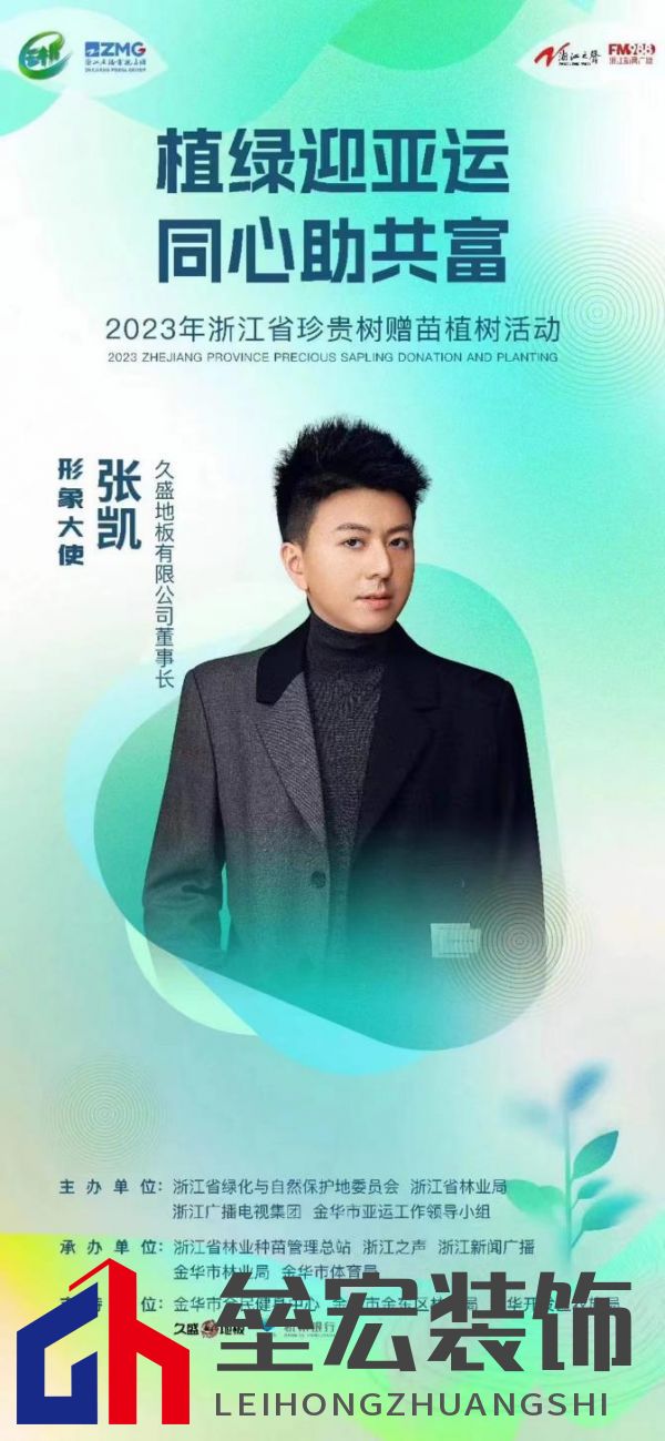 ??活動(dòng)受到了社會(huì)各界廣泛關(guān)注,久盛地板董事長兼總裁張凱先生特邀出席,并與皮劃艇世界冠軍許亞萍、浙江衛(wèi)視主持人王帥、浙江之聲主播方雨、全國十大苗木經(jīng)紀(jì)人金華世軒園林董事長程偉達(dá)等4位嘉賓被授予2023年全省珍貴樹贈(zèng)苗植樹活動(dòng)形象大使稱號(hào)。隨后張凱先生宣讀了倡議書,向社會(huì)呼吁:“栽下一棵樹苗,成就一片綠色;以實(shí)際行動(dòng)踐行杭州亞運(yùn)會(huì)‘綠色、智能、節(jié)儉、文明’的辦會(huì)理念,共同助力亞運(yùn)會(huì)碳中和?!?/p>