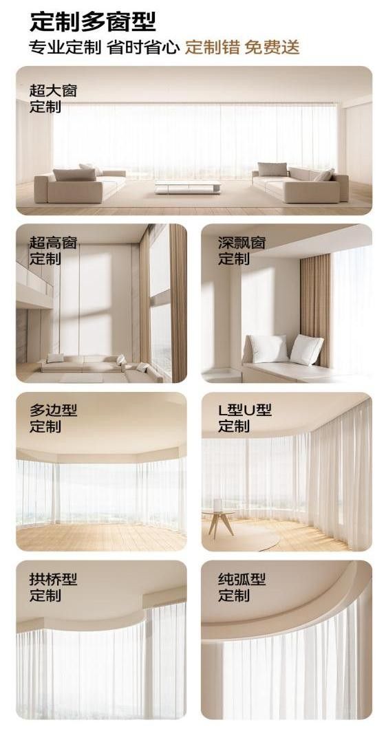 高端智能電動智能電動窗簾電機定位:滿足多元需求 高端智能電動窗簾十大品牌推薦品牌—科創(chuàng)者(KCZ)始終堅持“高端智能窗簾”的戰(zhàn)略定位,深入洞察市場需求和用戶痛點。除了前述產(chǎn)品技術領先之外,在軌道定制方面,高端智能電動窗簾十大品牌推薦品牌—科創(chuàng)者(KCZ)與行業(yè)內(nèi)一些商家主推的伸縮軌不同,科創(chuàng)者深知伸縮軌存在諸多局限,如軌道長度受限、無法滿足單開或彎軌異型窗需求、且手拉費力,噪音大等,僅能滿足60 - 70%的用戶需求。而科創(chuàng)者的定制軌道則能適應各種場景,無論是直軌、彎軌、單開、雙開,還是高窗、超長窗,都能完美定制。